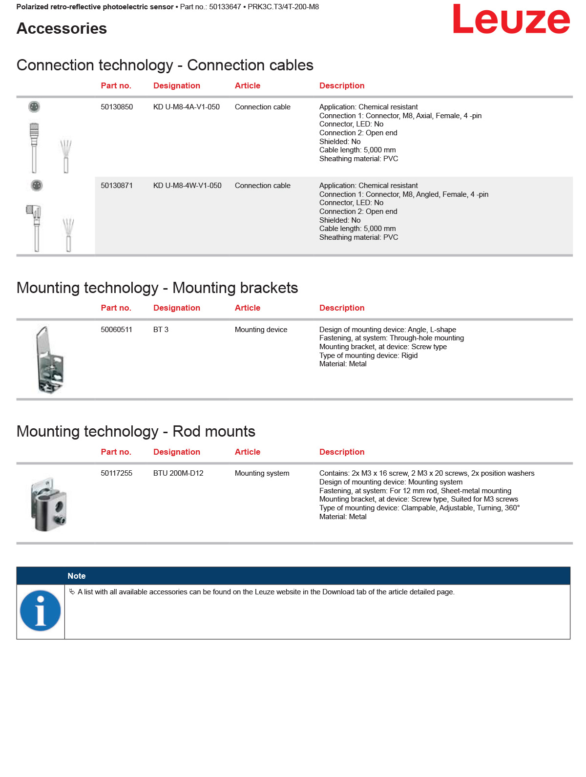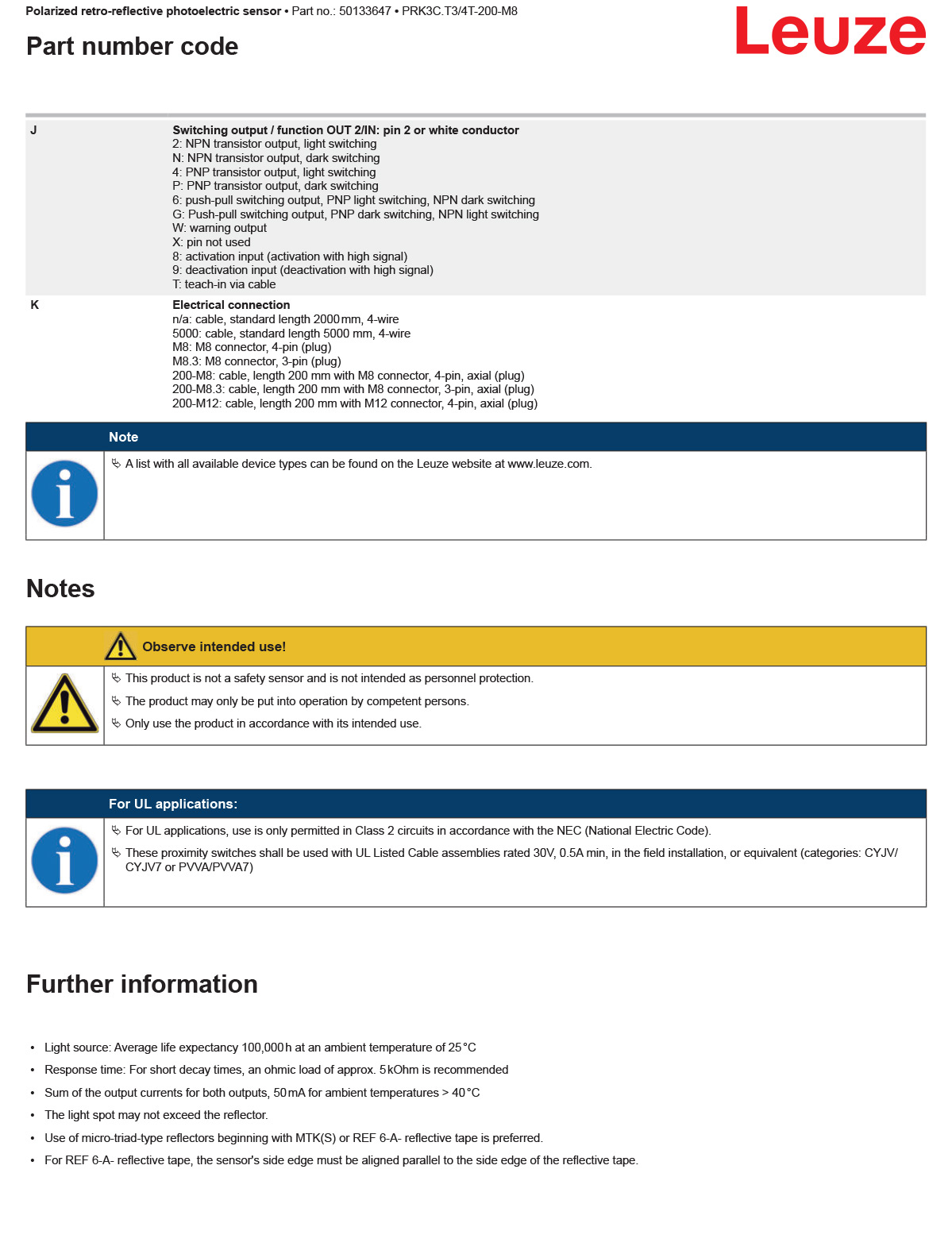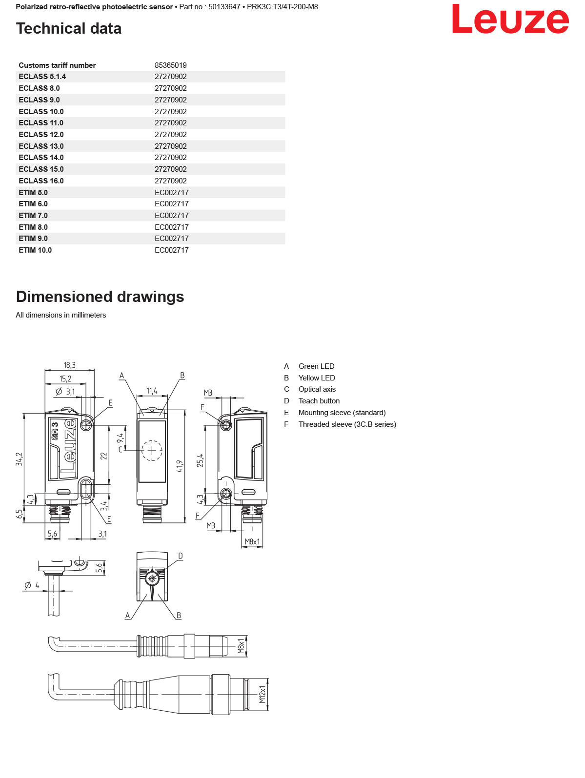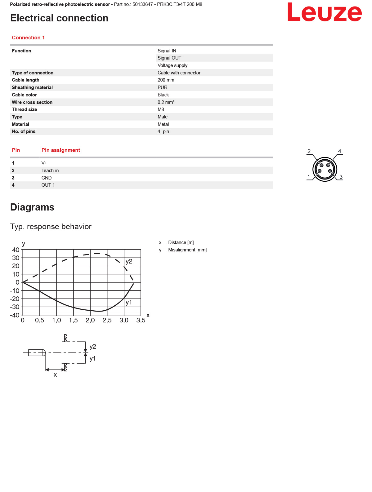 德国LEUZE劳易测 PRK3C.T3/4T-200-M8 带偏振光片镜的镜反射型光电传感器